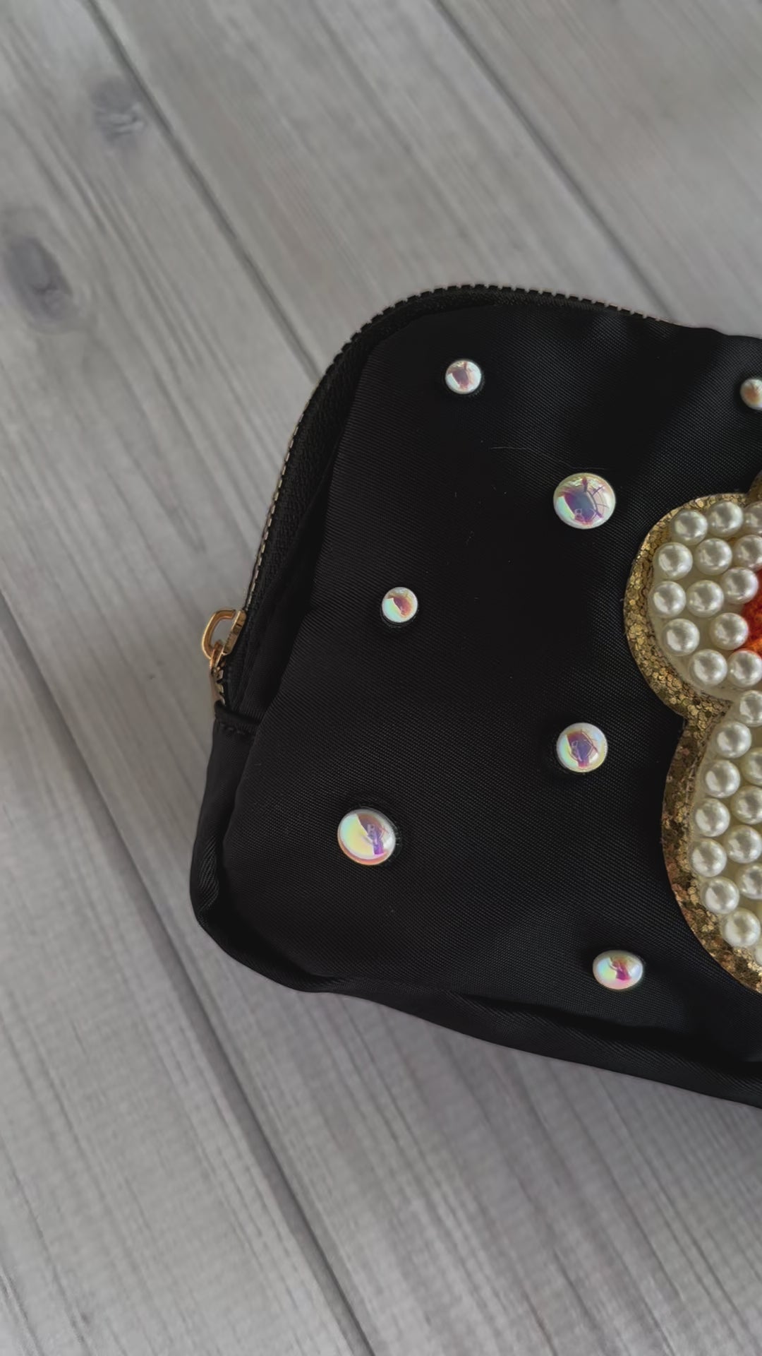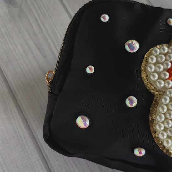 Black Bag with Orange Minnie Patch Irdidescent Pearls
